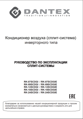 Документы и инструкция к кондиционеру DANTEX CONCORDE INVERTER RK-09SCDGI / RK-09SCDGIE